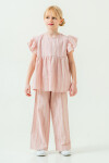 Rahat ve Esnek Kumaşıyla, Fırfır Kollu Geniş Paçalı Simli Rahat Kesim Kız Çocuk Alt Üst Takım Günlük Ve Özel Kullanıma Uygundur!