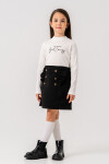 Fitilli Kumaş, Baskılı Badi ve Fırfırlı, Düğme Detaylı Süet Etek Günlük ve Özel Gün Kullanıma Uygun Kız Çocuk Etekli Takım