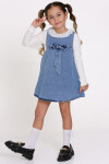 Dantel yakalı, fiyonk detaylı ve badili kız çocuk 2'li kot elbise.